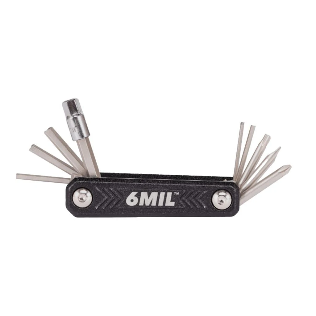 The 6MIL FT-01 folding tool is a small and lightweight folding tool with all the essentials you could need to fix your bike on the go. The forged bits and alloy body provide a durable and lightweight tool that can fit in your pocket or bag with no hassle