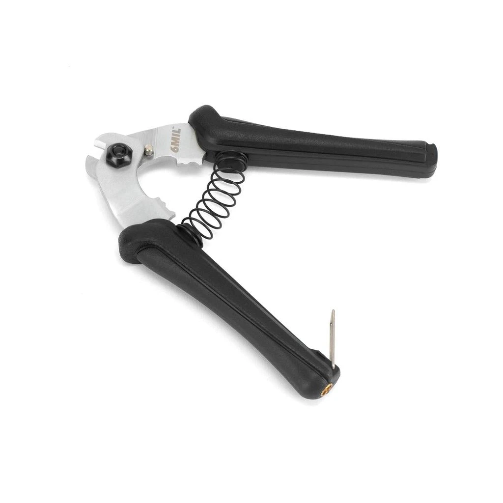 The 6MIL CC-01 cable cutter is a workshop-grade multi-purpose cable cutter. The super shark jaws cut through cables, housing and even spokes easily. The cutter also features an integrated crimper for cables and housing, as well as a forming hole in the base allowing you to open and form the inside of cable housing with ease.