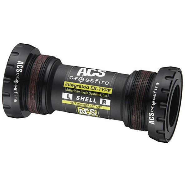 The ACS Crossfire External BB features bearings that mount outside the bottom bracket shell keeping the cartridge bearings bigger which allow them to spin better. Designed to work with all 24mm spindles.