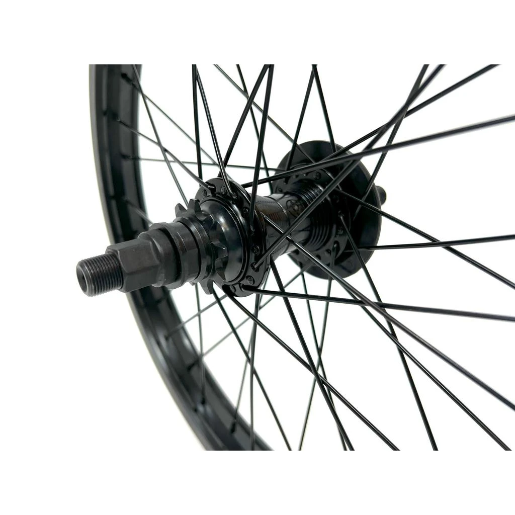 This custom wheel features an Alienation Illuminati hub and is hand-built into an Alienation Blacksheep 18″ rim. It’s exactly what you are looking for.