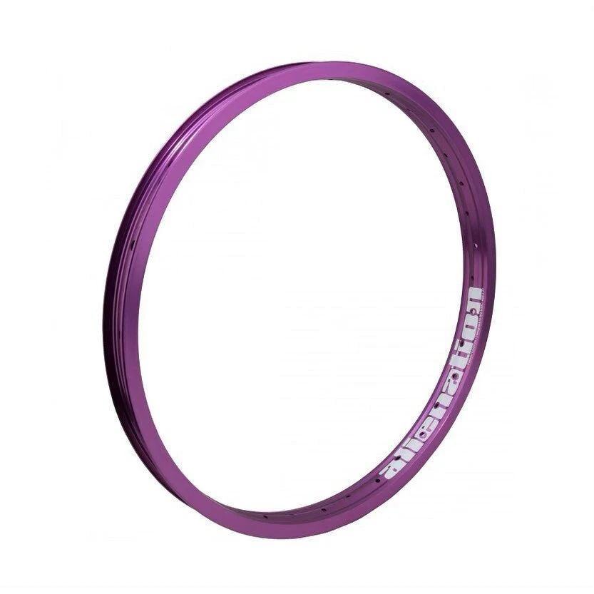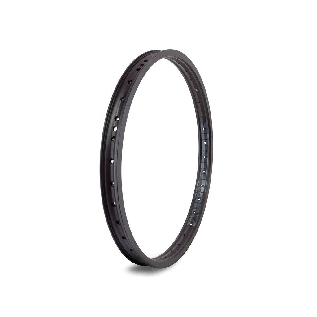 Introducing the Alienation Felon Rim, the first 20” Street Tubeless rim on the market. The TCS Felon uses the most advanced drilling pattern of any bicycle rim on the market today. Their new 4D drilling process creates the optimal interface between spoke and rim. This exact angle reduces binding and the need for eyelets. The I-Beam is distinctive, centrally located vertical support counteracts spoke loads and provides torsional rigidity. The new G69 material is super light with superior strength. NO RADIAL LACING. These rims are designed and drilled for 3 cross specifically. Each TCS Felon rim comes with a valve plug for the unused valve hole (TCS Felon rim drilled for both TCS and Schrader).