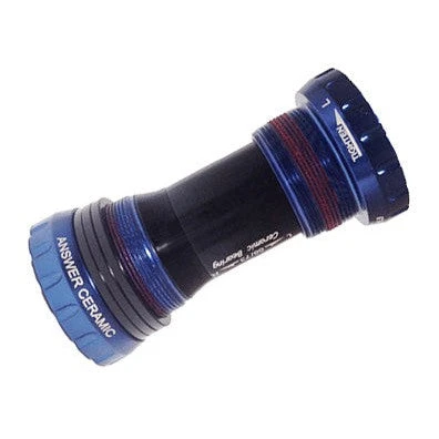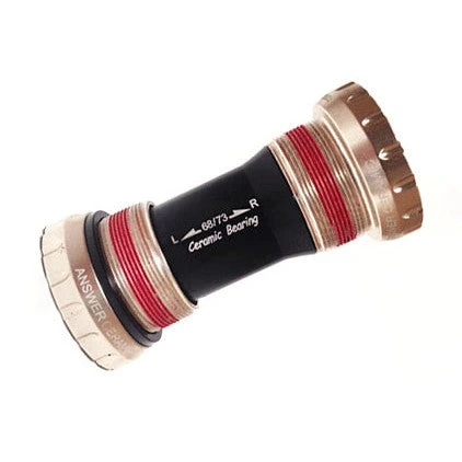 This Answer Euro bottom bracket is manufactured with ceramic bearings and offers a smoother turning crank compared to a traditional cartridge bearing for freer turning cranks and less energy wasted. The result is a significant reduction in spinning resistance that can be felt immediately when you make the switch from a traditional BB.