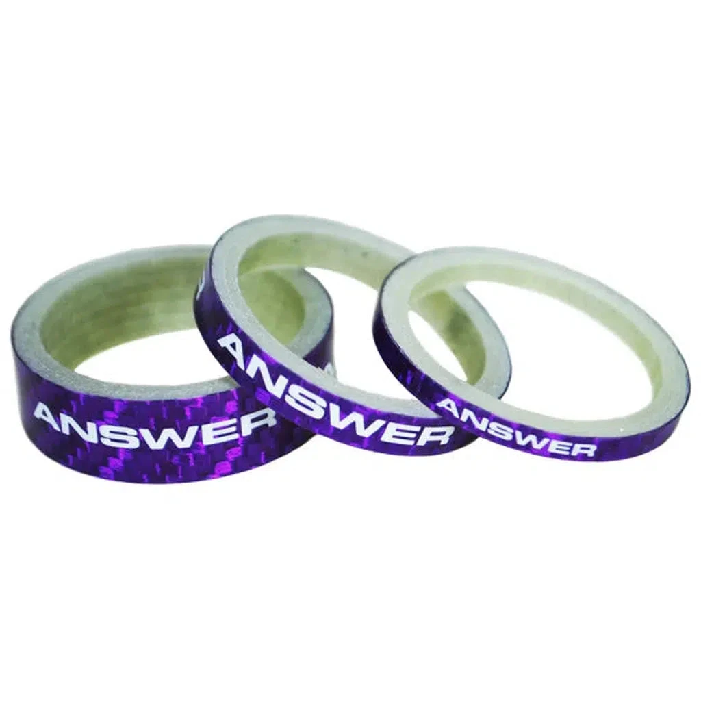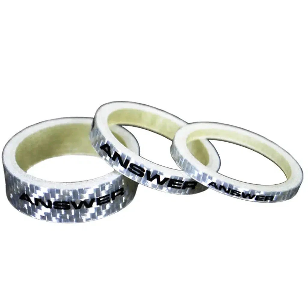 Set that bar height to the millimetre with a set of Answer Carbon Headset Spacers. Available in a range of diameters, these are the Mini versions for riders with 1 inch forks. Available in several colours, add a little colour AND carbon to that stack height.