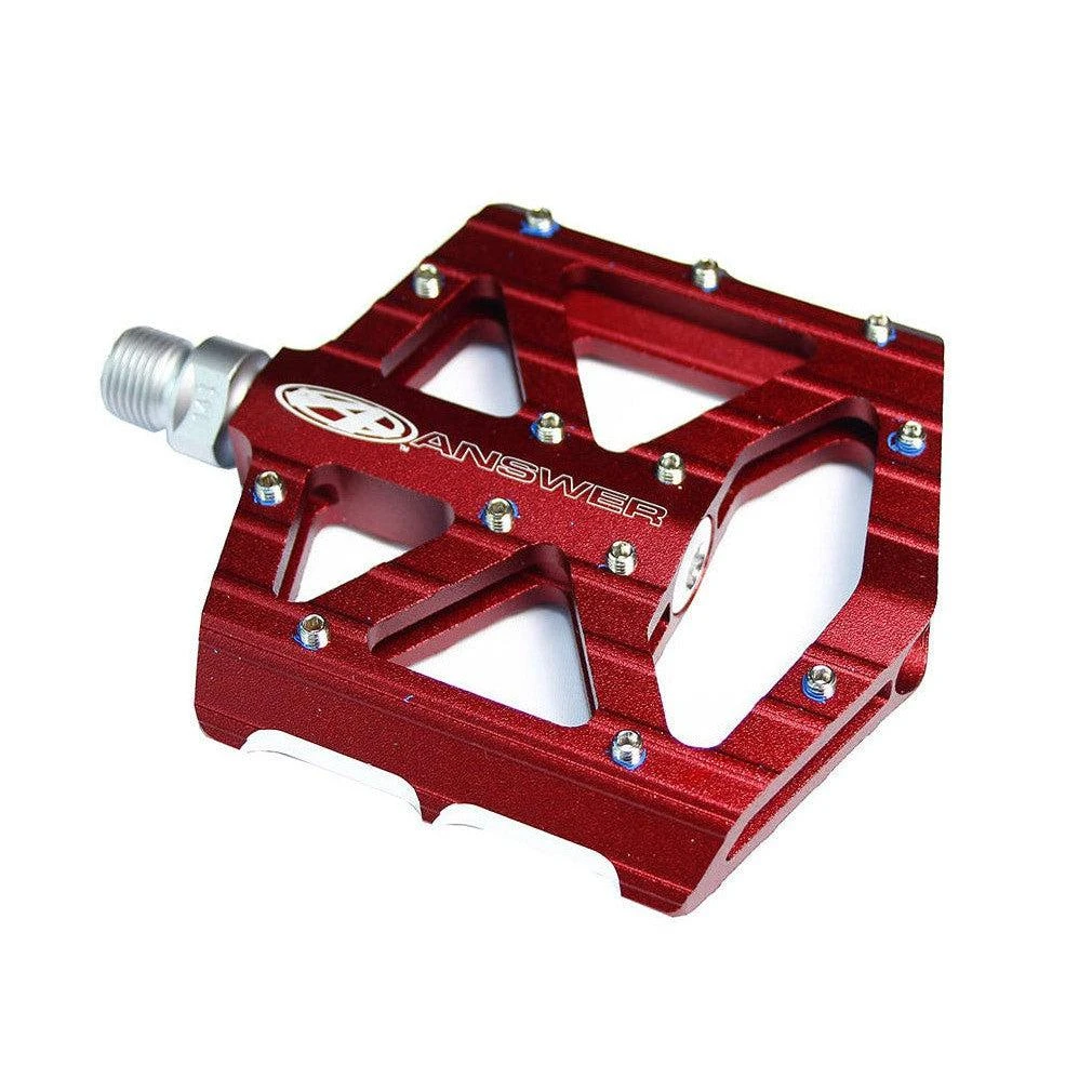 The Answer MPH Junior pedals are CNC machined from lightweight aluminum featuring an ultra low platform designed for smaller riders, large machined cutouts for weight savings, 13 removable pins per side for maximum traction, chromoly spindles and sealed cartridge bearings for increased reliability. 9/16″ (12.4 oz)