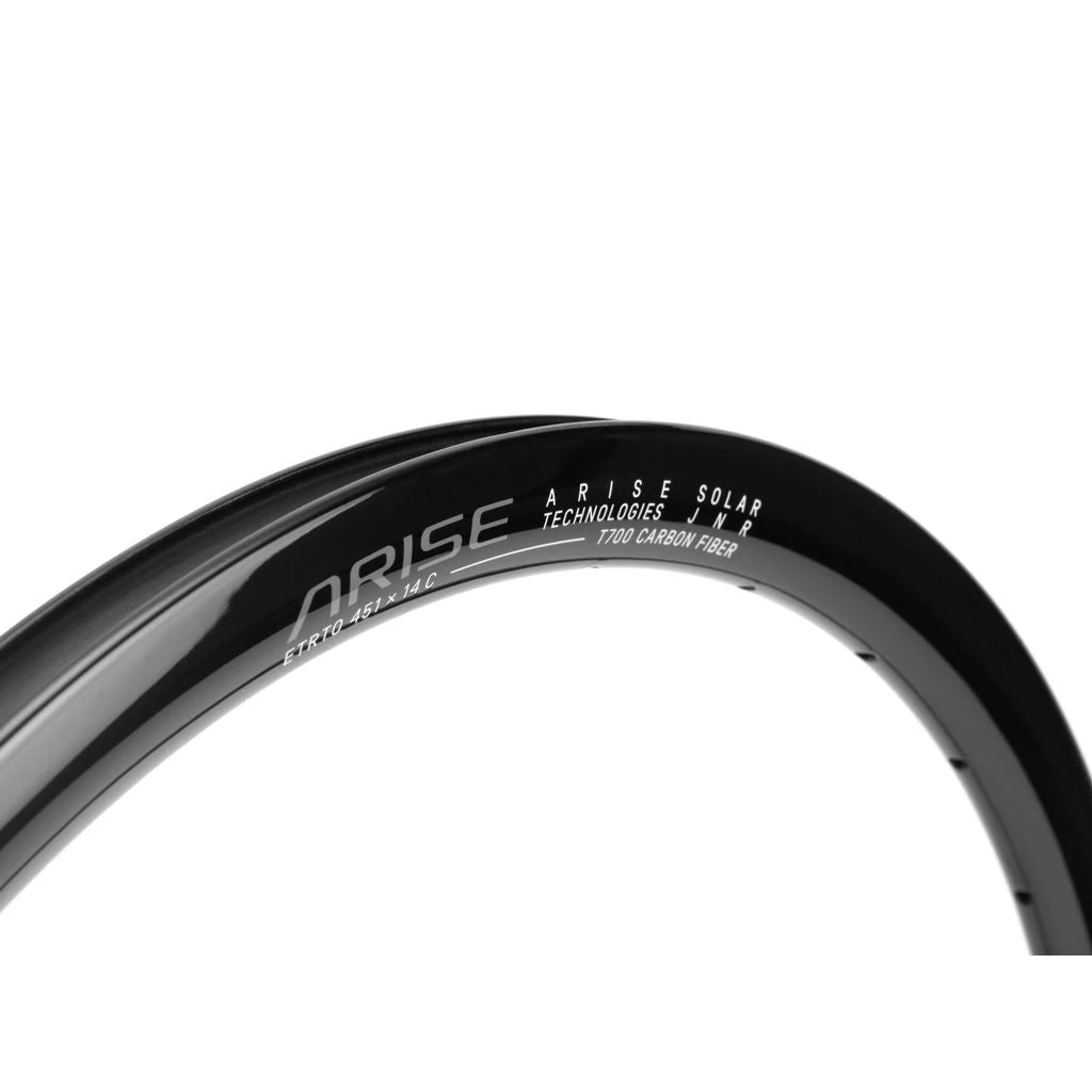 A Pro-level carbon fibre rim in a Junior (451mm) size to fit 1 1/8″-1 3/8″ tyres. Utilising only the very best T700 Torayca Carbon Fibre construction and handmade with one of the best carbon fibre factories in the game. Front and Rear versions with the rear using a special sidewall texture for increased braking performance.