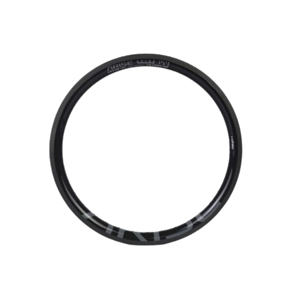 The Arise Solar Carbon rim. Utilising only the very best T700 Torayca Carbon Fibre construction and handmade with one of the best carbon fibre factories in the game. Front and Rear versions with the rear using a special sidewall texture for increased braking performance.