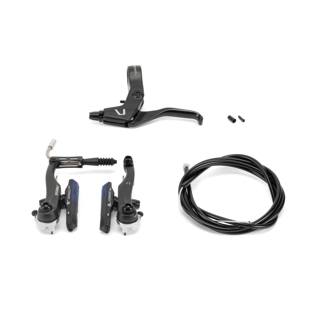 A complete v-brake kit for mini/junior/expert-sized bikes. Includes the brake, lever, cable and hardware.