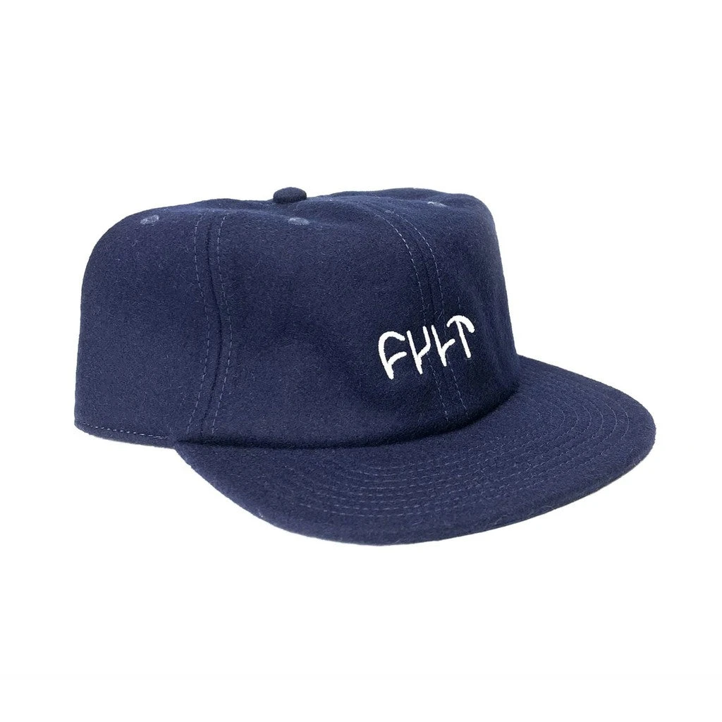 Unstructured, six-panel Cult Crew Oxford cap, crafted from a blend of 50% wool and 50% recycled polyester with an adjustable metal clasp fastener.