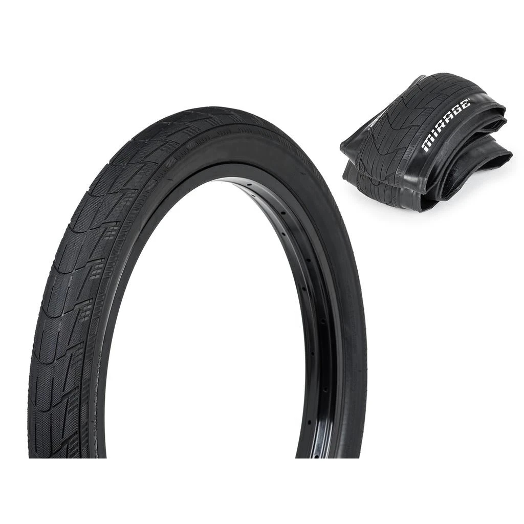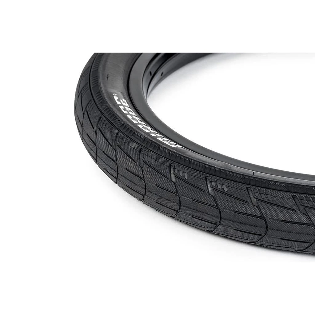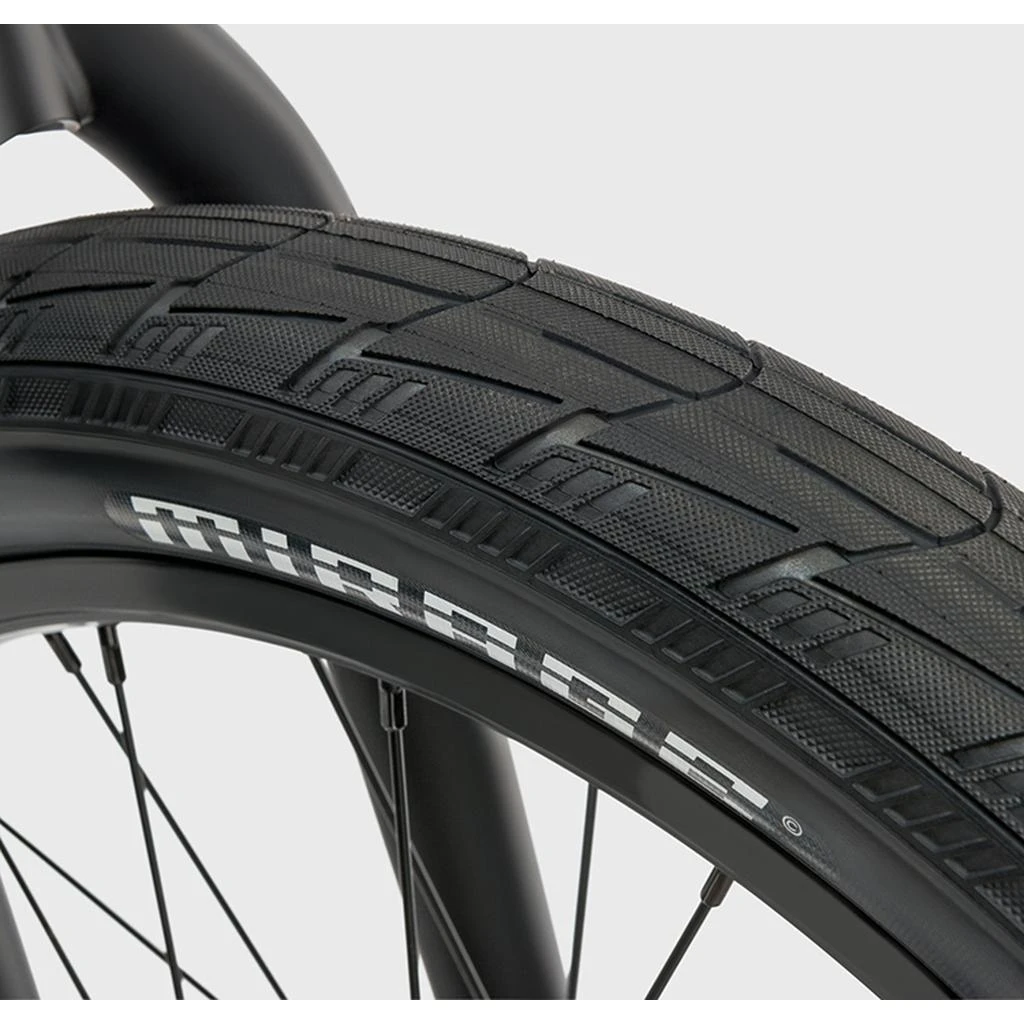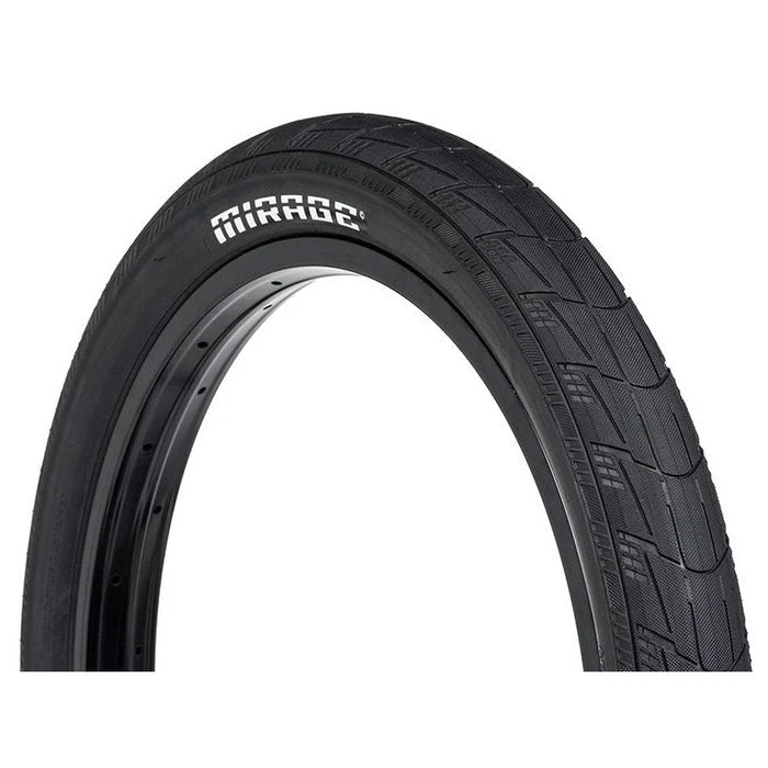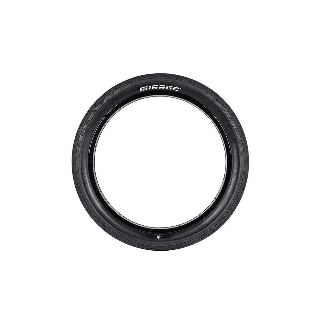 The Eclat Mirage folding tyre might just be the most advanced tyre the German company has ever designed. Built on the premise of a super light tyre that was strong enough for the toughest street riders on the team, the Mirage uses a high-performance 120tpi casing and a specially designed dual compound tread that is smooth in the center, but with plenty of grip on the outer tread for traction and control whilst cornering and carving. The Mirage was also designed with street riders in mind, and uses a full bead-to-bead —Silkshiledin protection layer and a special outer ridge which acts like a bumper and prevents the sidewall getting damaged during grinds. Rated up to 110psi, the Eclat Mirage tyre is perfect for street riders and ramp riders alike, and is one of the lightest tires on the market, but sacrifices none of the strength and quality that a lot of lighter tyres give up in exchange for weight savings. Available in 2.25 (57.5mm), 2.35 (60mm), and 2.45 (62.2mm) options in both regular wire bead, and a super light kevlar folding bead for those looking to reduce weight even further.