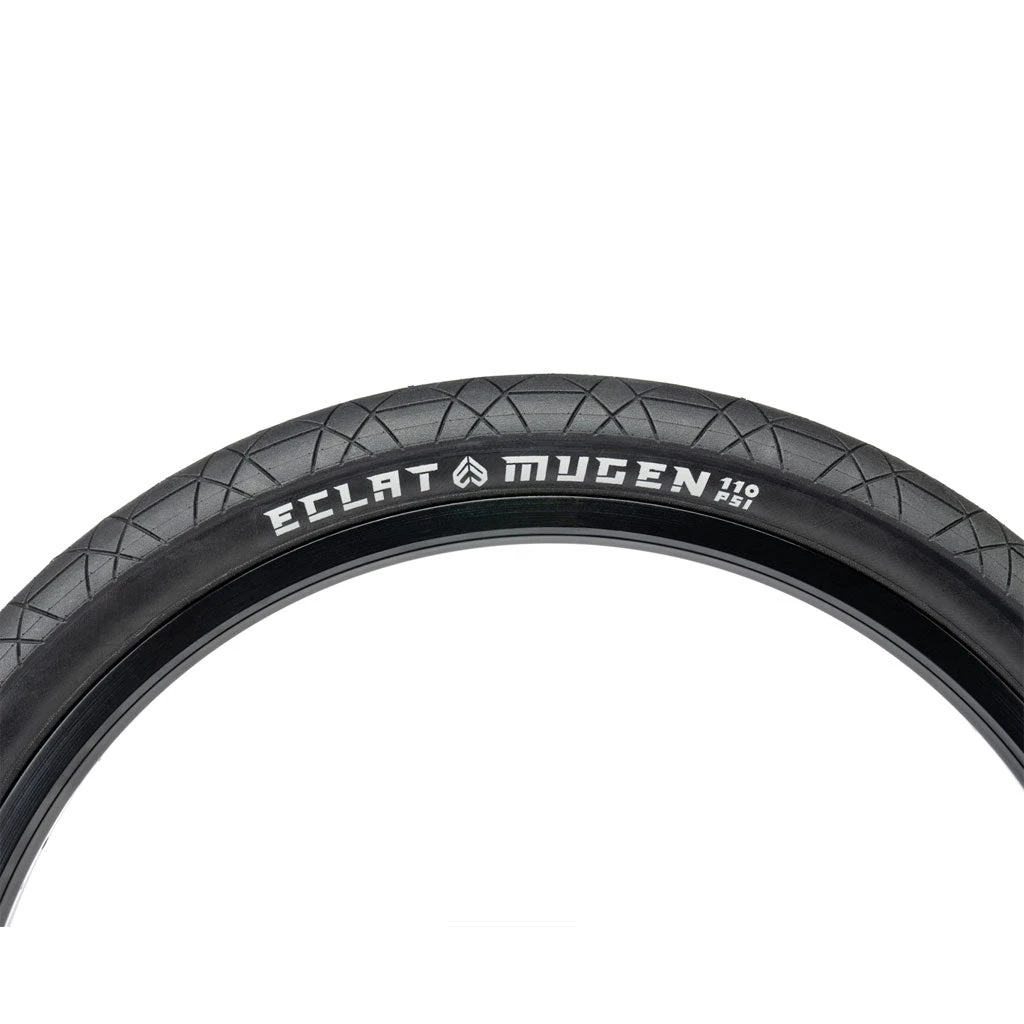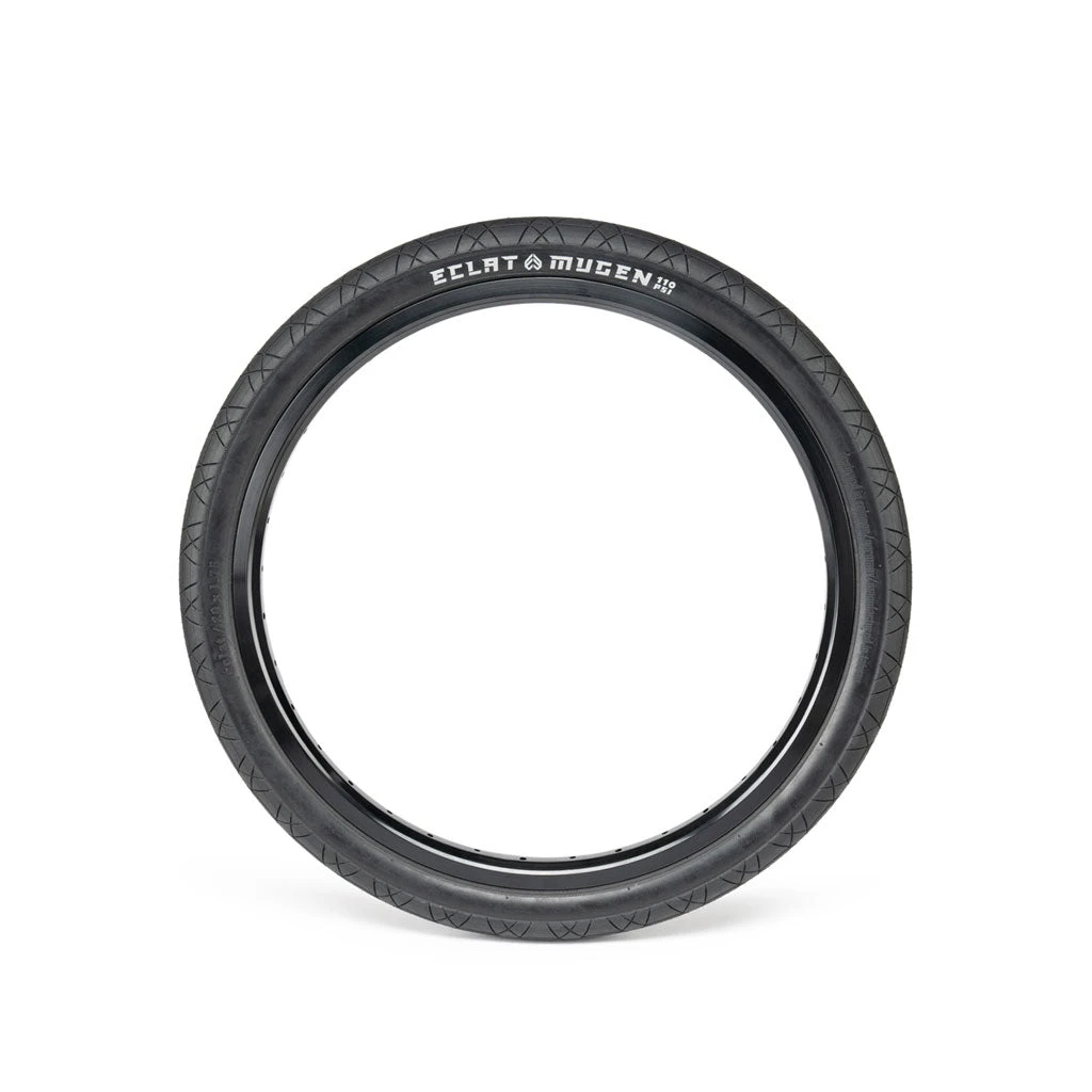 Have you ever found yourself spinning around on your front wheel in the garage and thought, “I’d sure love some more grip” Well we have the perfect thing for you.The eclat Mugen Tyre. Designed by Eclat exclusively for flatland riding. Featuring a unique race-spec rubber compound for minimal rolling resistance and unrivalled grip. Ultra-round casing profile for the “perfect” rolling tyre. Available in 1.75″ and 1.95″ sizes.