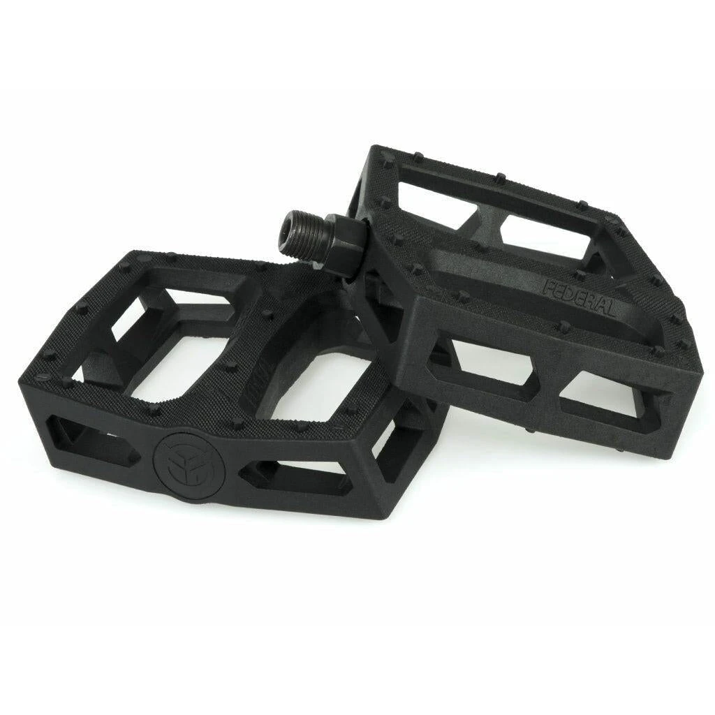 The Federal Command Plastic Pedals have been designed to be one of the toughest pedals on the market. Its slightly thicker profile means it will last longer when used for pedal grinds while still retaining a modern angular aesthetic. This has been combined with a thicker diameter spindle to withstand the highest demands of the heavy duty street rider. The pedal has been finished off with all-over knurling and extra pins to increase contact with the riders shoe.