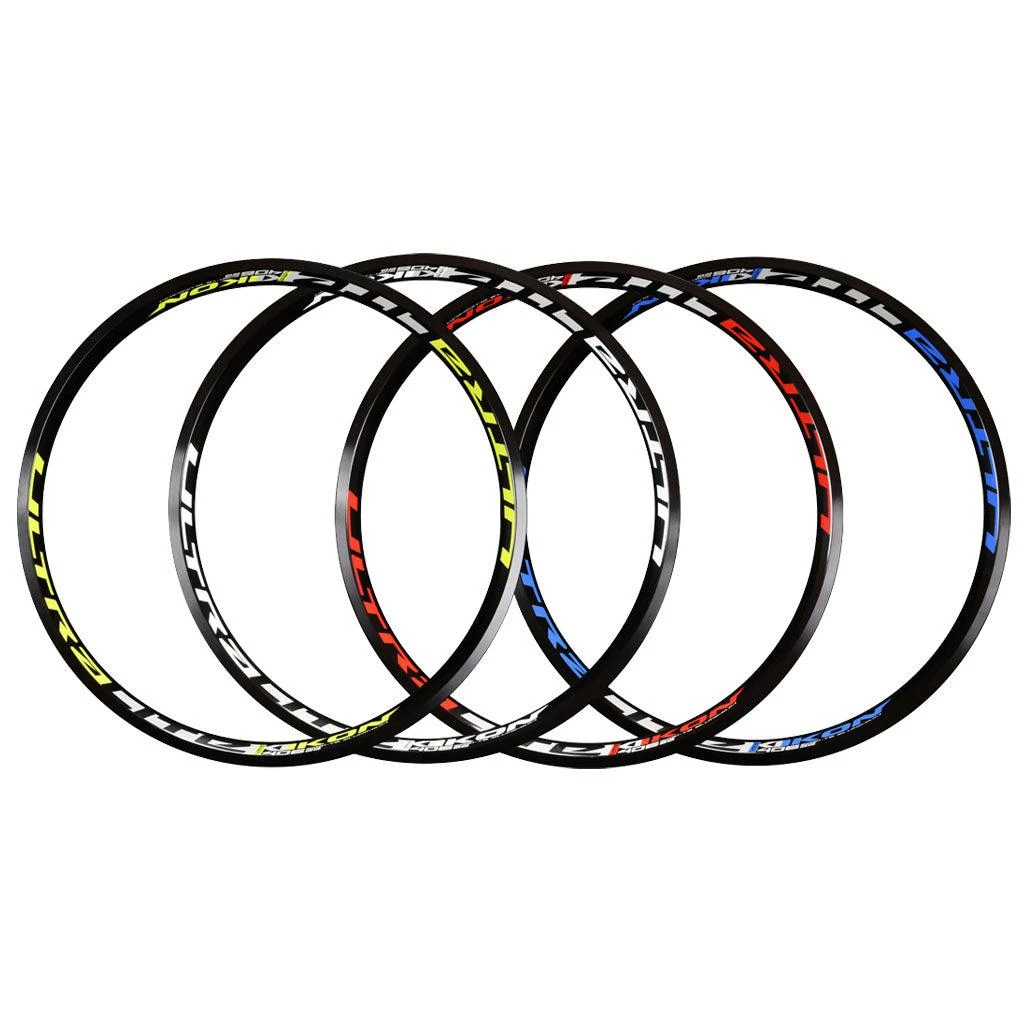 Anodized Black Rims with Water Transfer Applied Graphics in 4 color options (White / Blue / Red / Neon Yellow)