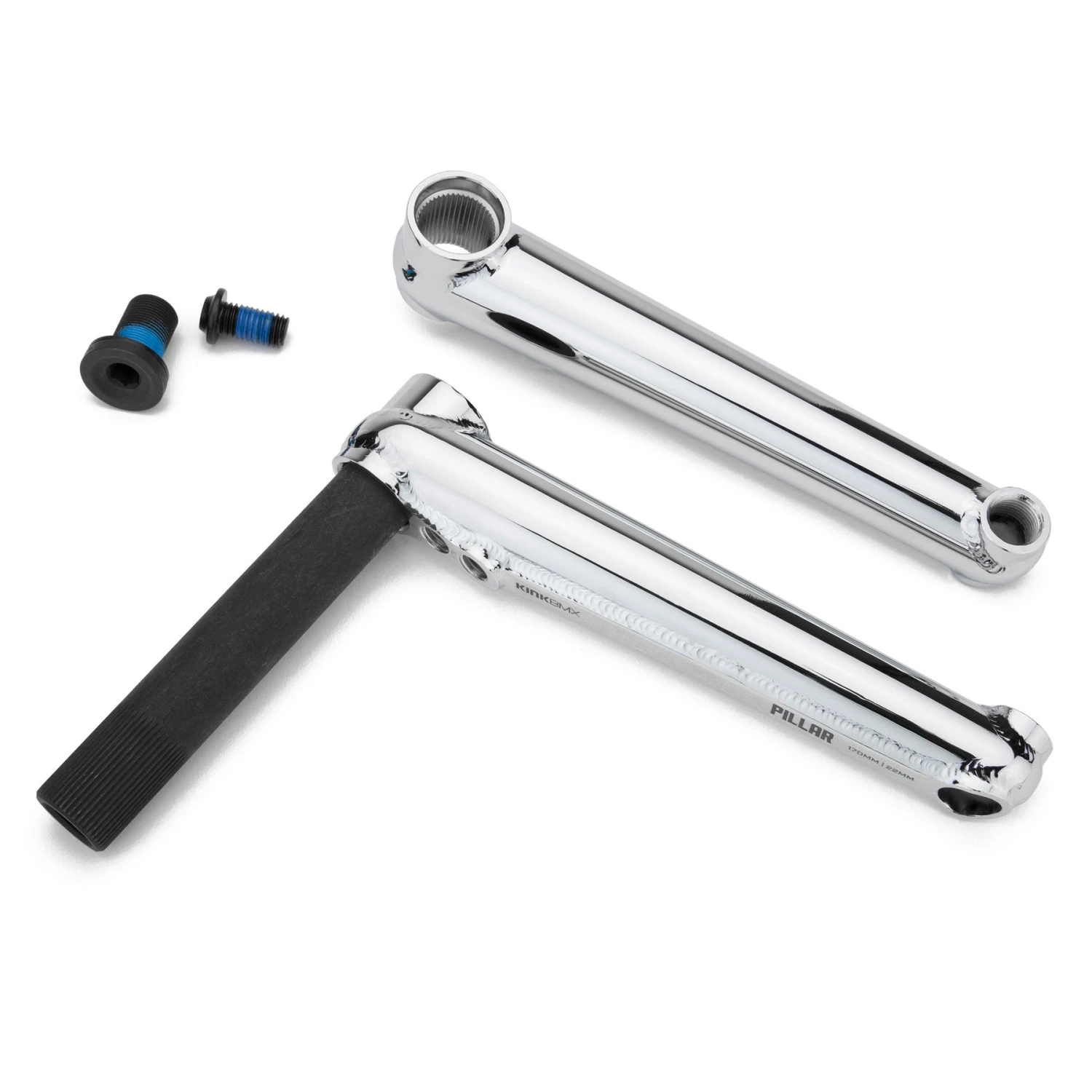 Let your innner beast take over with a set of these under your feet! The Kink Pillar cranks use a unique one piece forged backplate that tie together the pedal and spindle bosses, while acting as an extremely stiff backbone to each crank arm. This design eliminates several weak points found in traditional tubular cranks, and increases the overall strength without adding weight. The Pillar cranks also feature a two piece hydraulically pressed spindle to arm design, and a heat-treated hollow chromoly spindle.