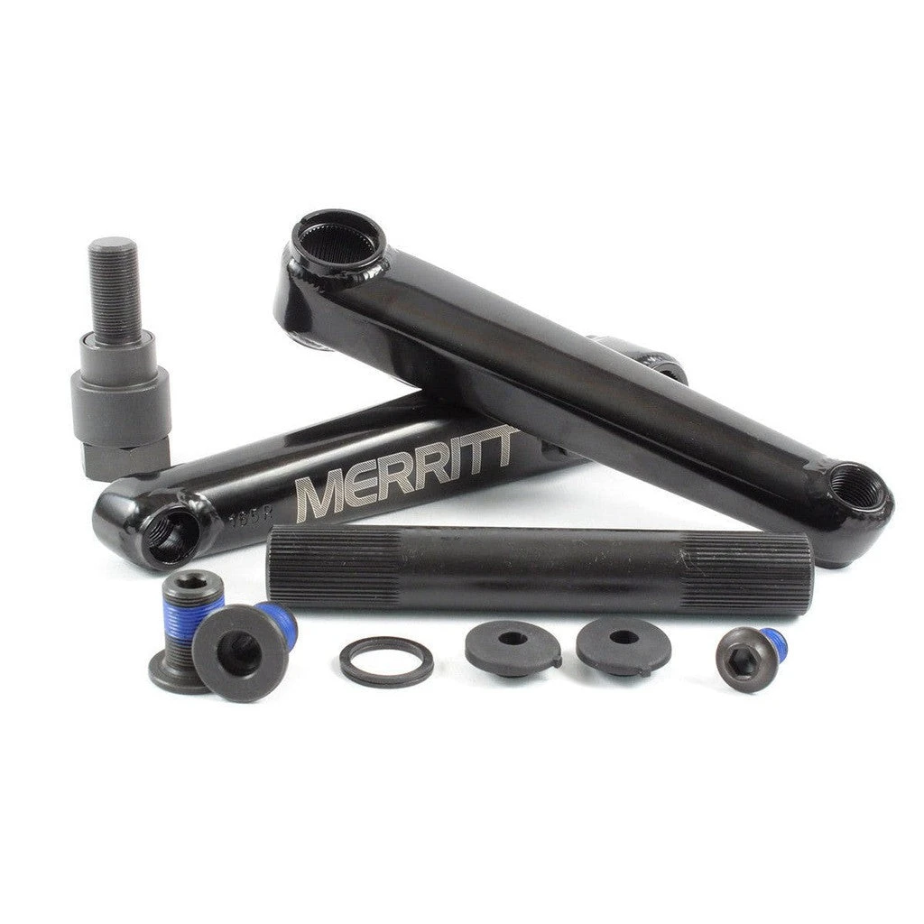 The Merritt Battle Crank is a super strong BMX crank set. They feature 4130 Chromoly arms and a 48 splined 22mm Spindle. Merritt also includes flush spindle bolts with rubber inserts for ankle protection. The Merritt Battle crank includes a lifetime guarantee against cracking and breaking. Can be used both RHD or LHD.