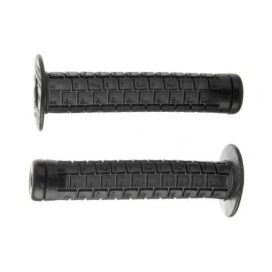 The Odyssey Aaron Ross Signature Grips are Odyssey’s softest grip offering, and super comfy. Think of those key pads as rubber blocks of cushion. In regards to the flanges, Aaron doesn’t like them, and you have the option of cutting them off if you don’t like them either.