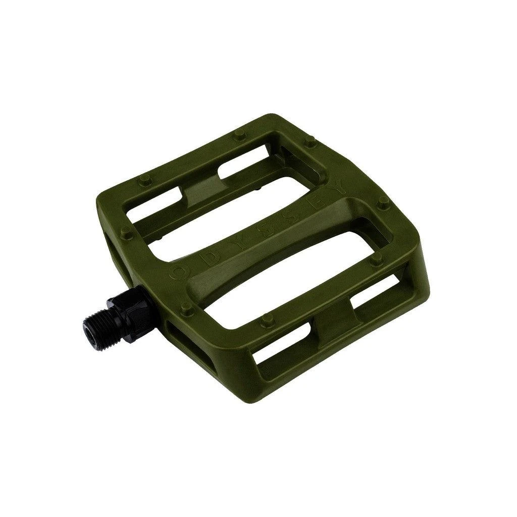 The Odyssey Grandstand V2 pedal features a unique slim profile, a wide platform and a comfortable concave that feels exceptional as soon as you set foot on it. The pedal features a unique bearing configuration that allows a big spindle to be paired with a slim pedal body.