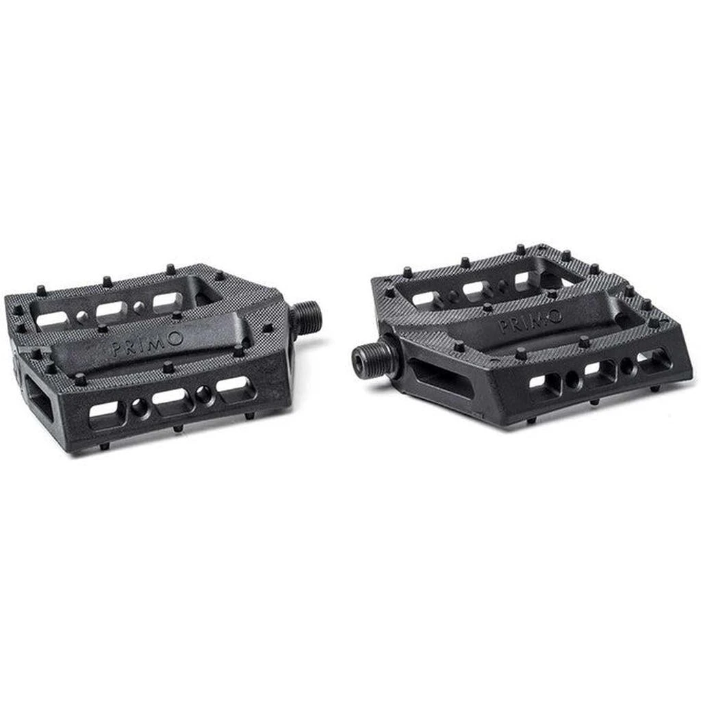 Get your feet on these huge platforms and give crankarms a crack with these epic pedals from Primo! When Connor Keating approached Primo with this idea they knew instantly that it was something that they had to try to make a reality. The Turbo Pedal has a unique body shape that covers the end of the axle giving a near flush connection to the crank arm. This allows you to have much more foot placement freedom when standing on the pedal as well as more grip, an improved surface contact area for modern day crank arm grinds and an all-around more aesthetically pleasing appearance. The pedal can be tightened via an Allen bolt on the backside of the spindle and also allows for the use of a thin park tool style pedal wrench.