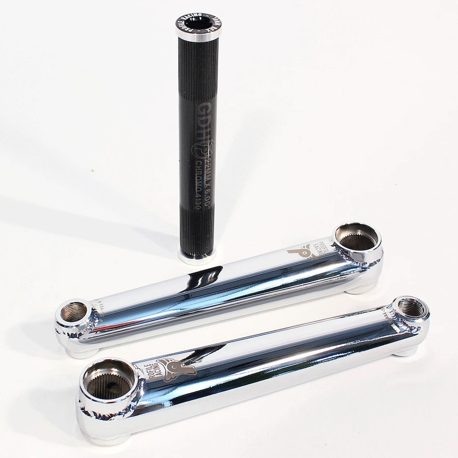 Column Crankset includes LH & RH crank arms, 6″” 22mm GDH chromo axle, aluminum axle bolts/washers, and Column Crank Tool.