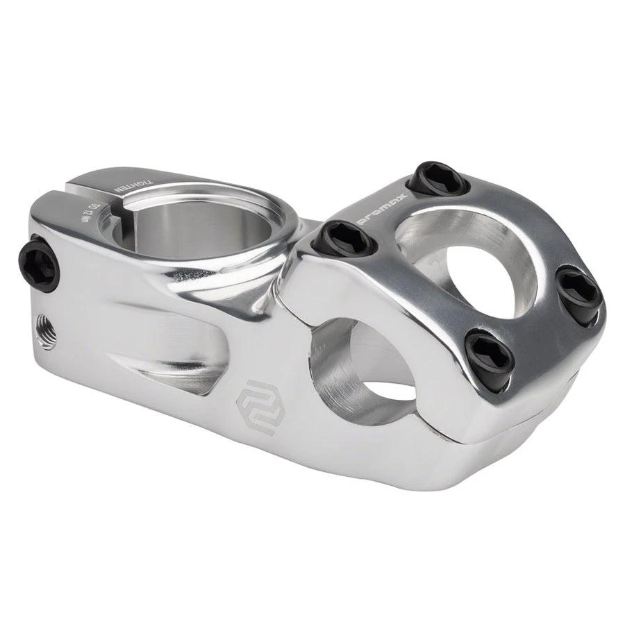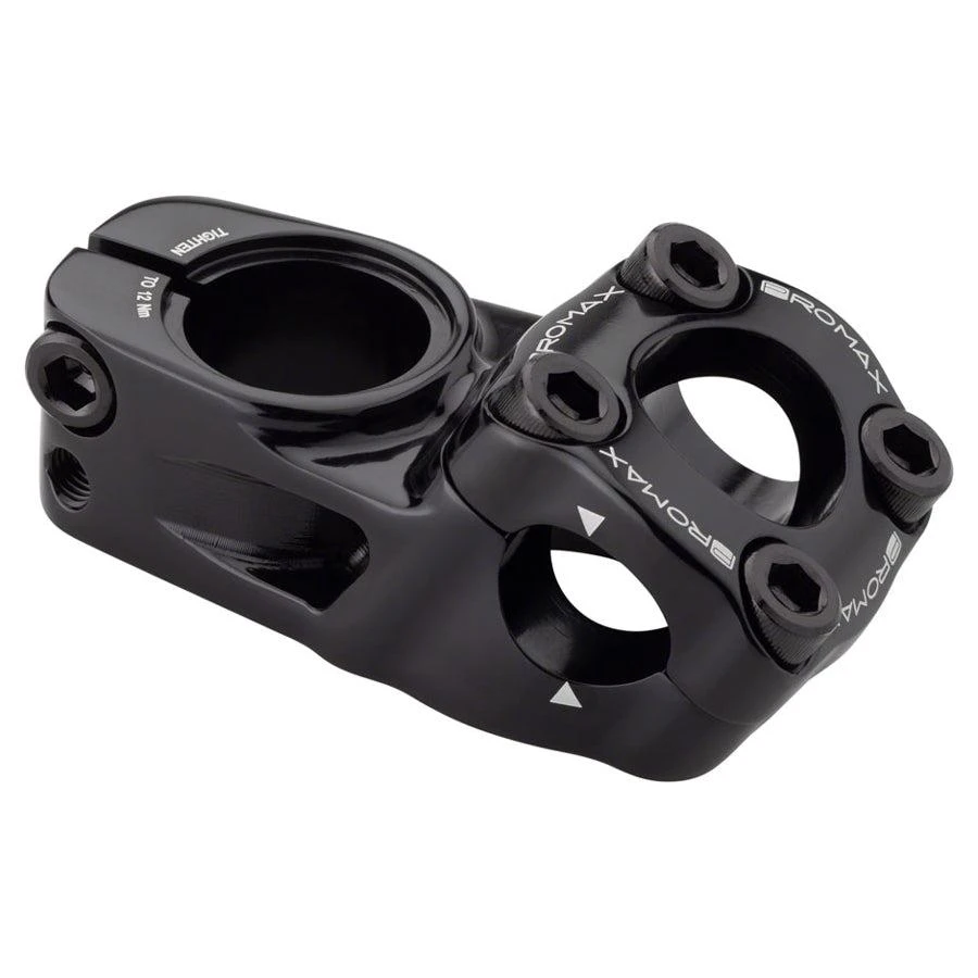 Promax Impact stems have a 45-degree top-load clamp design for BMX racing and freestyle. Available with 48- and 53-millimeter extensions, they are cold forged from the highest quality 6061-T6 aluminum then CNC machined to refine the shape and further reduce weight. The “”open”” design keeps weight low (260 grams/9.2 ounces in a 48-mm extension and 265 grams/9.3 ounces in a 53-mm extension), while maintaining plenty of strength and ensuring your bars stay put.