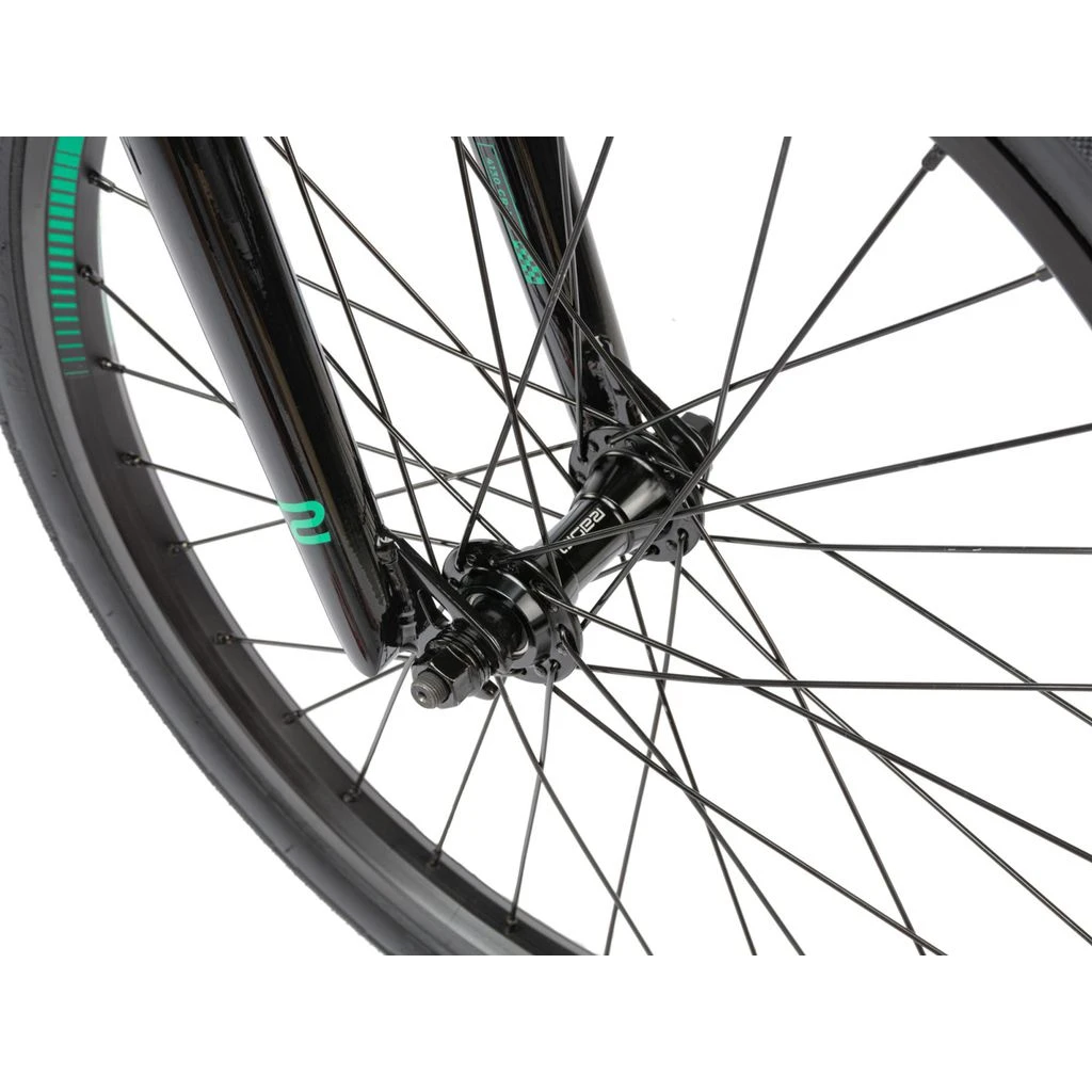 The frame is manufactured from hydro–formed 6061–T6 alloy, with forks fully built from chromoly, from the steerer tube, to the fork legs. This means that it’s a light bike, yet with tough forks, so that it can take on the biggest jumps that your rider can throw at it.