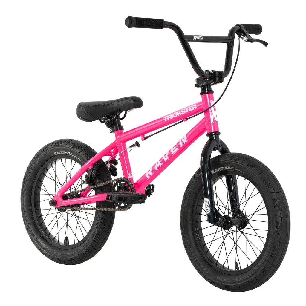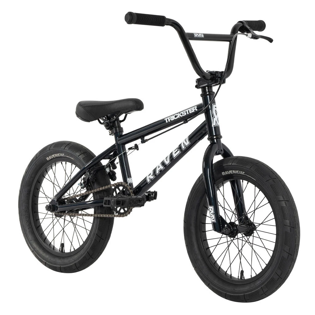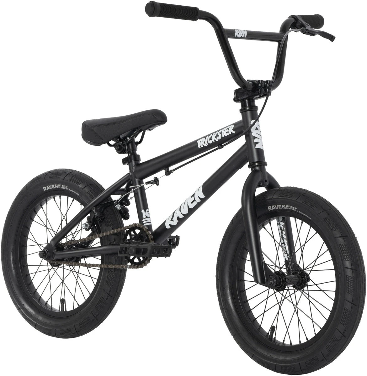 The Raven Trickster 16 inch BMX bike is ready to roll straight outta the box and onto the streets, the parks, a set of dirt jumps or even the old faithful driveway sesh. Built tough with all the right bits and none of the fluff, this little rig is perfect for up-and-coming shredders who want to get stuck into BMX without blowing the budget.