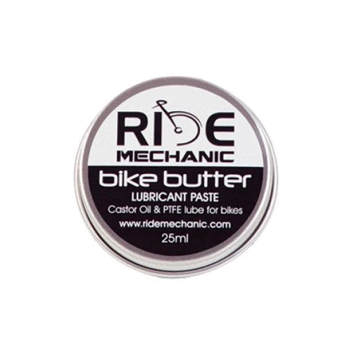 BIKE BUTTER is a high performance lubricating and protective paste which contains castor oil and high levels of micronised PTFE. It is highly acclaimed for use on threads to reduce corrosion and is perfect to use on gear and brake cables and on shifter and brake lever pivot points. Due to its high “paste” viscosity it can be used where reliable operation is required for extended periods. It repels moisture and stays in place working where it needs to work and keeping dirt out.