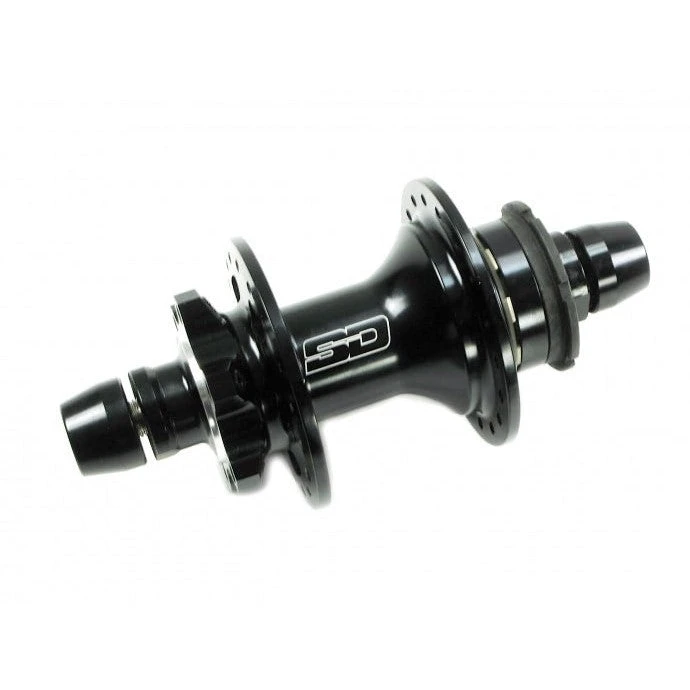 SD Ace Pro Rear Hub with 10mm axle bolts is disk brake compatible and features: