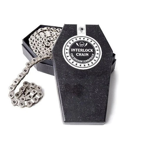 The Shadow Conspiracy Interlock Chain is the original half-link chain, and to many still the best. The Interlock V2 sets the standard to which all half-link chains will be judged. This incredibly strong system allows you to sit your wheel (*with any gearing, on any frame) and be able to find that sweet spot where the tension is just perfect… The smaller (half) links enable a massive range of sizing variables and are the ‘go-to’ for many…