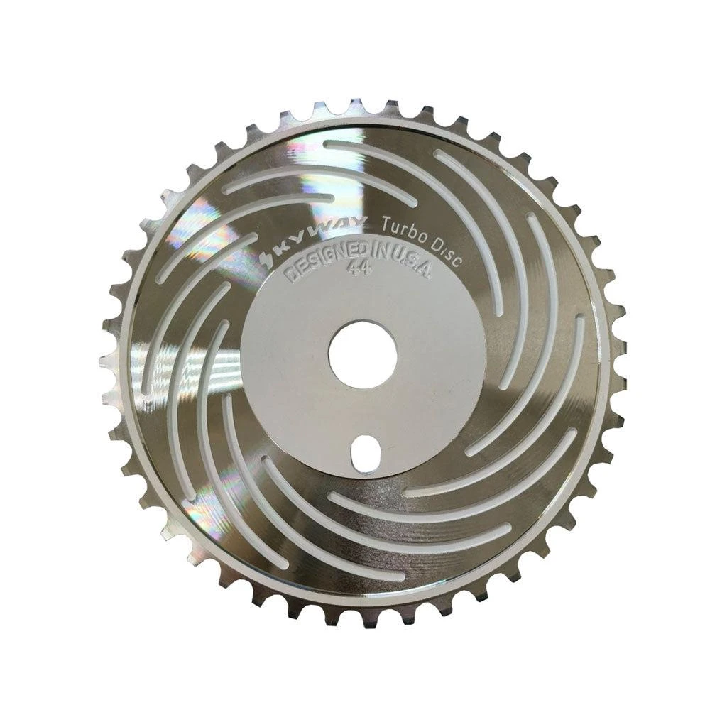 Reintroducing the Skyway BMX Turbo Disc Sprocket! Back by popular demand. CNC machined alloy and designed in the USA, This is the perfect addition to your TA or Streetbeat build.