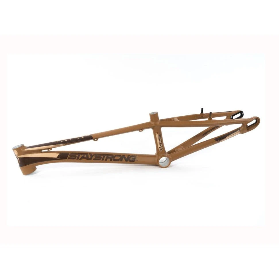 Stay Strong’s Pro sized frames feature a tapered 1.5 head tube, Press Fit bottom bracket (PF30), 20mm rear dropouts with 10mm & 15mm adaptors and built in chain tensioners included. The V3 is a disc ready frame with a disc brake hanger adapter available (sold separately). The frame can also run with conventional V-Brakes with its shaved and hidden mounts. The frame uses a 31.6mm seat post which reduced weight whilst helping improve stiffness . The smooth welds also help give the all new water decals and logo a clean look. This low, triangular shaped frame has a modern look with overall balanced stiffness, combined with the weight saving the V3 frame will help you reach your racing goals in 2020.