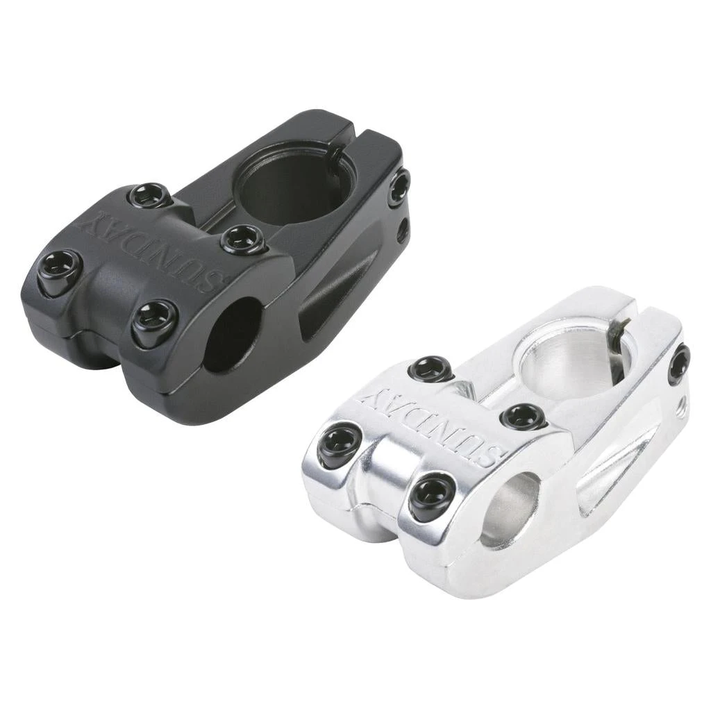 The Freeze top-load Stem uses a die-cast aluminum body with forged 6061-T6 aluminum face plate with embossed Sunday logo. It has recessed sides and bottom section to reduce weight. With Sunday’s choices of materials and design, Sunday is able to offer the same stem used by the Sunday team at a very affordable price.
