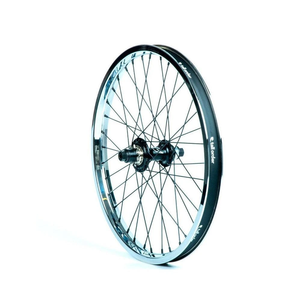 Tall Order Air Rims laced in a 3 cross configuration using Tall Order Double Butted Spokes and built on to a Tall Order Drone Cassette Hub.