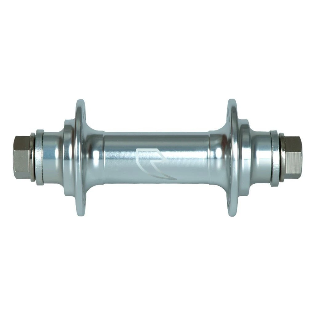 The Tall Order Glide Front Hub has a super slim small flange hubshell, 15mm chromoly female axle with Nickel plated 10mm solid axle bolts.