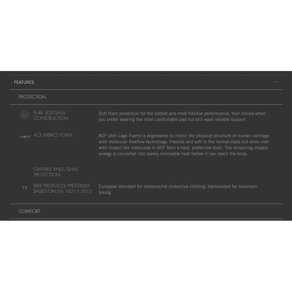 The pad incorporates laminated ACF foam with a Tough Stretch outer, whose super-light, comfortable, slim-line build provides all-day hardcore protection.