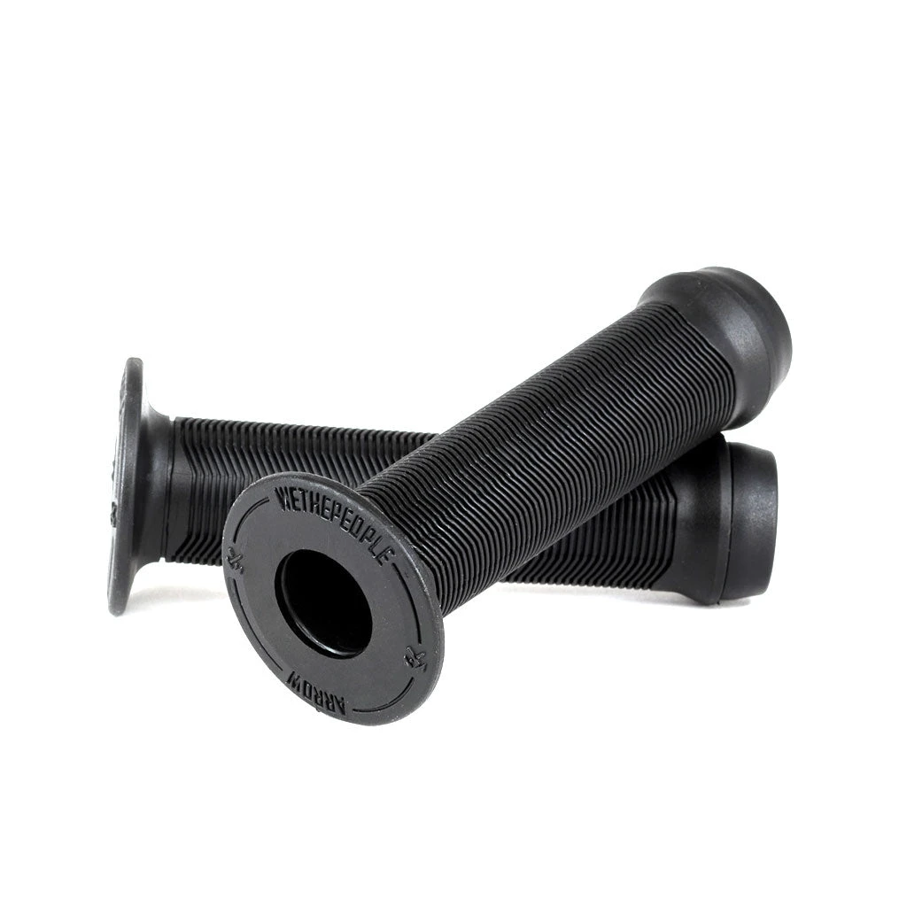 These are the Wethepeople Arrow (Junior) Grips. Shorter, more comfortable grips for smaller riders. Made from high quality Krayton rubber these are super grippy. Featuring a soft angled rib design with medium flanges and including WeThePeople nylon barends.