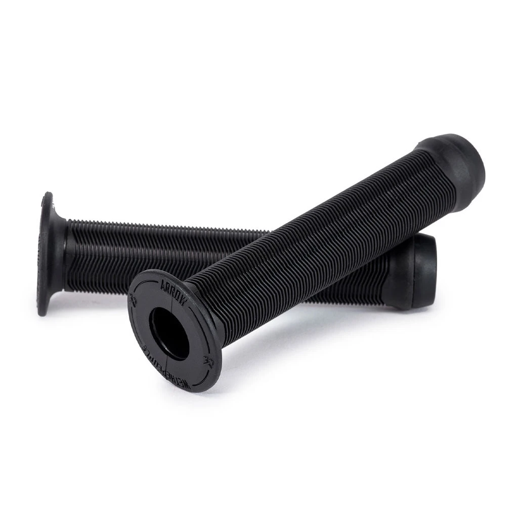 Arrow 110mm flangeless grips. Designed specifically for younger riders with 14”, 16” and 18” bikes with a short length, slimmer 27mm diameter as well as brand new vex-k6 rubber compound for a softer but more durable grip. The only children’s specific high-end aftermarket bmx grip on the market.