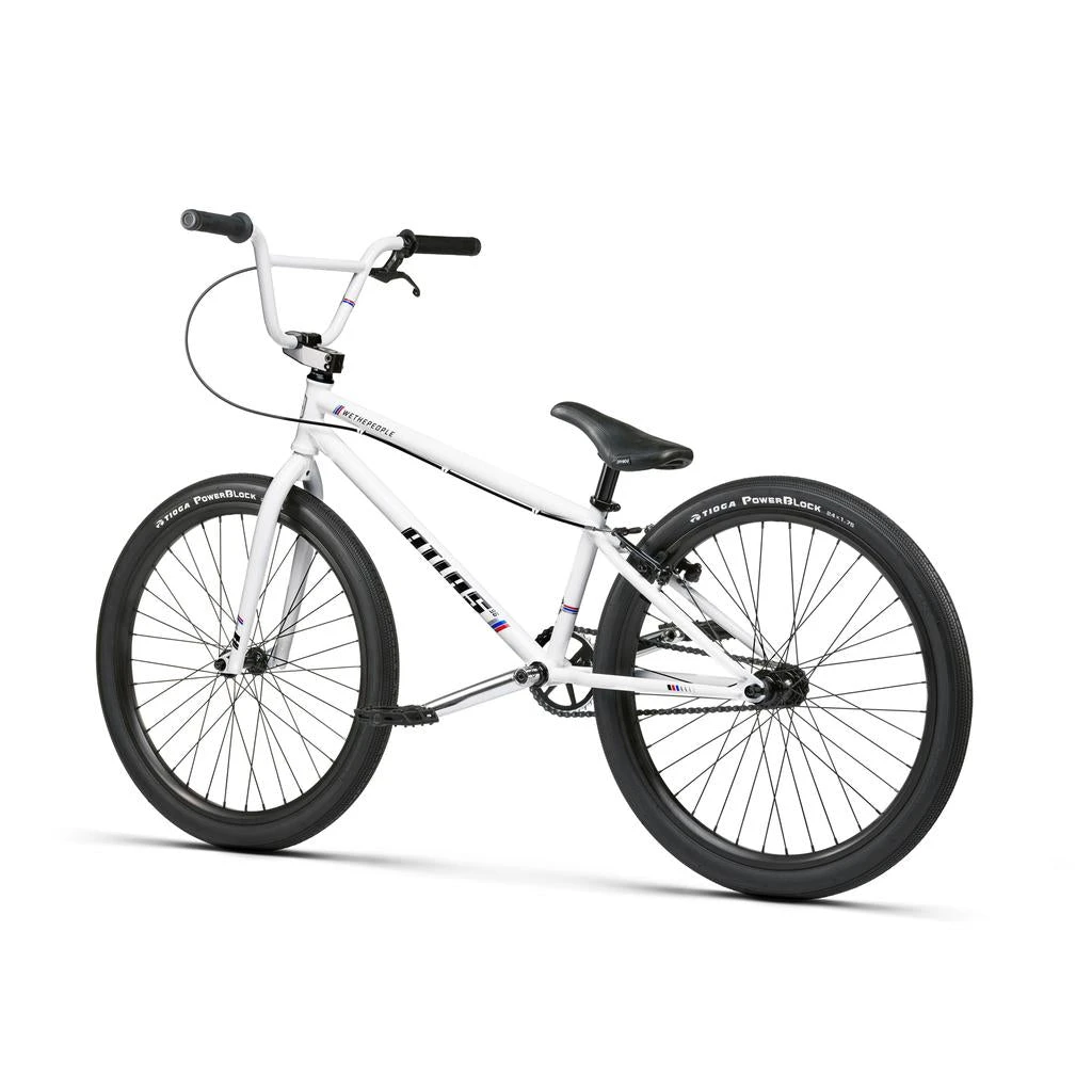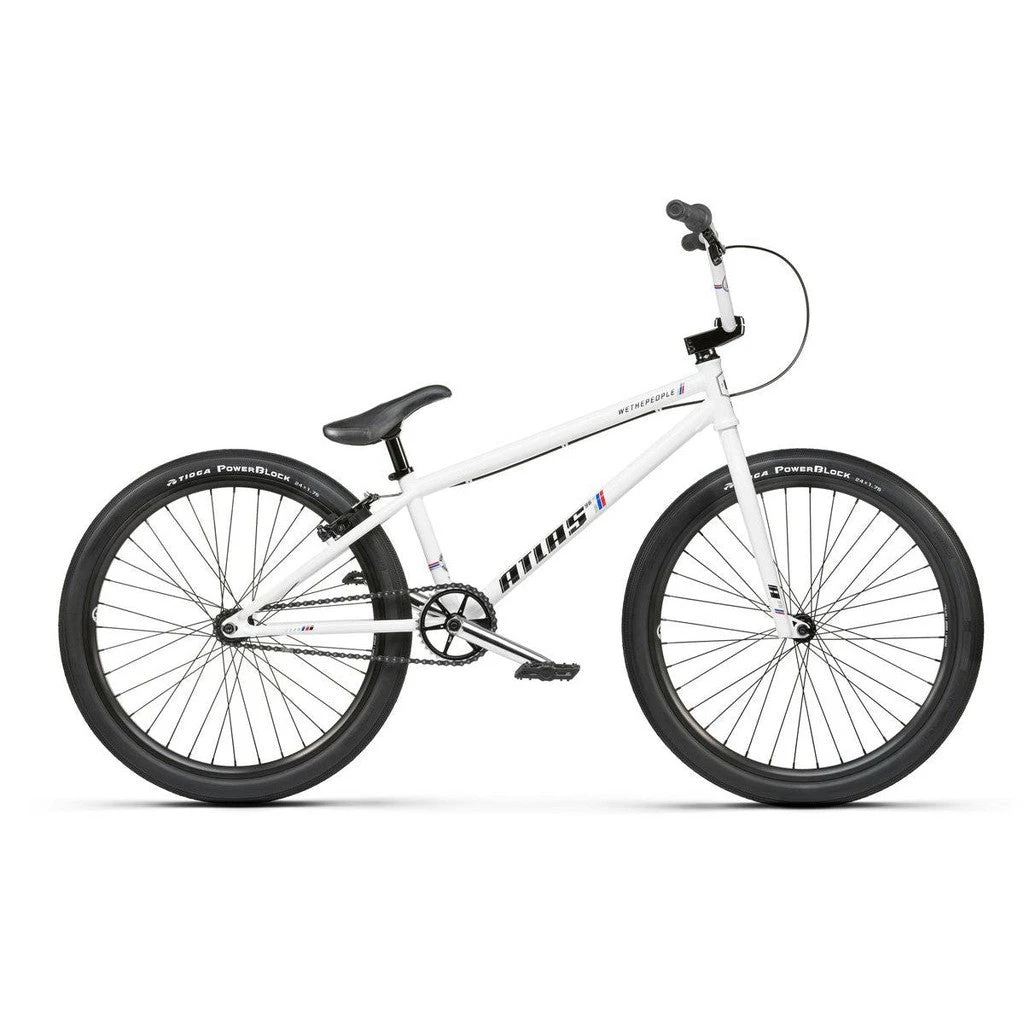 A bike with a larger following that we’d ever anticipated, the Atlas is the perfect bike for those times when bigger is better. Our 24” wheeled BMX features a throwback to our racing ancestry. The Glossy White finish is completed with race inspired geometry, a V-brake and even a WETHEPEOPLE Patrol stem and 33t sprocket, allowing you to really put your foot down and get your sprint on. Whether you’re down the trails, at the pump track or just heading into the city, the Atlas is so much fun to ride, you’ll have hard time putting it down.””